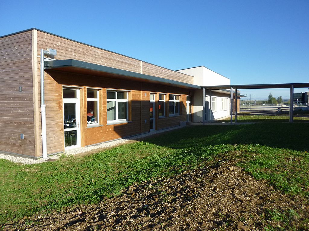 Construction d'un ensemble scolaire en ossature bois réalisé à Auxerre (89). Cet établissement a été la première école française bois passive labellisée Minergie-P.